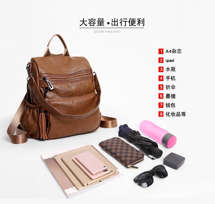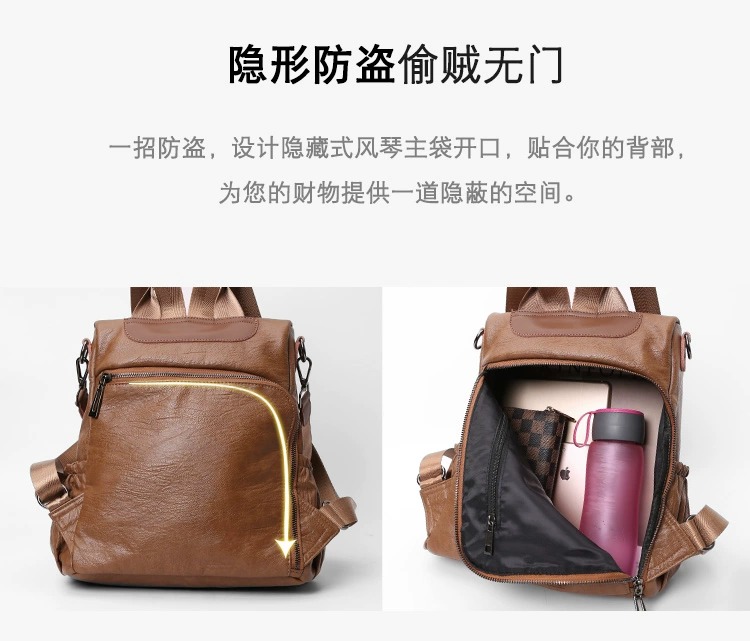 双肩包2025新款软皮防盗大容量背包休闲复古单肩两用女包